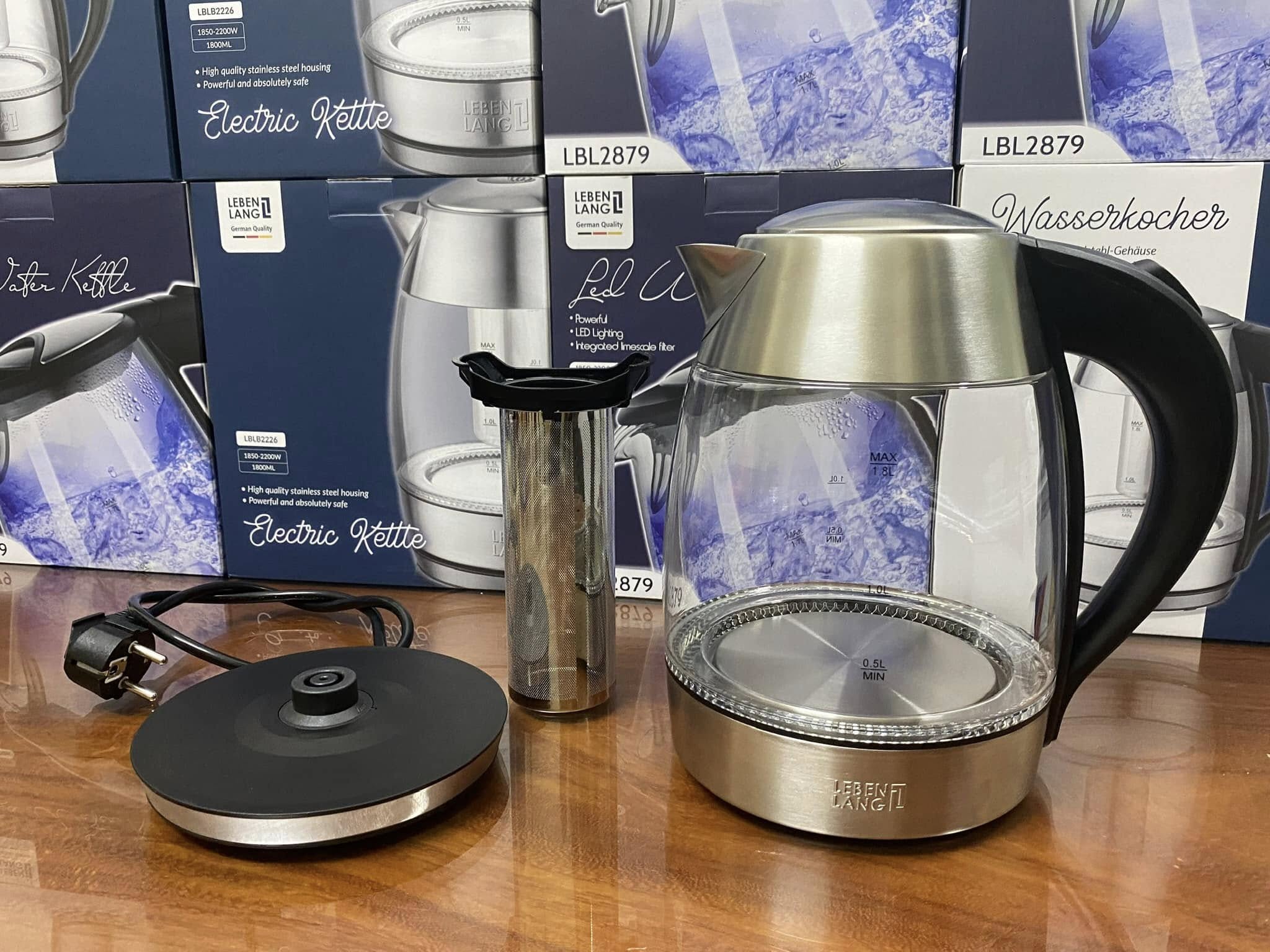 😍 Ưu điếm sản phẩm – ấm đun nước siêu tốc thủy tinh Lebenlang 1.8L: