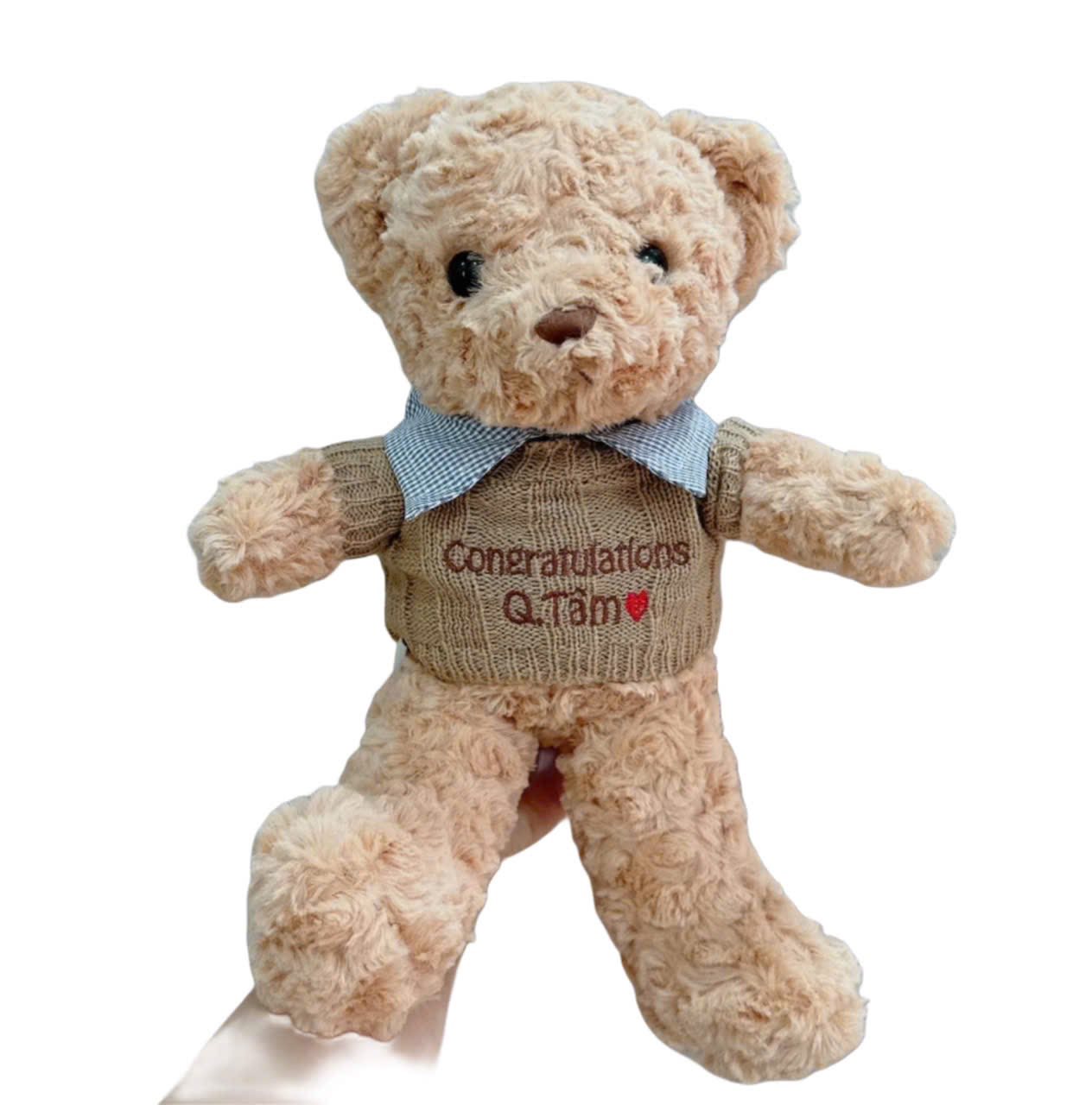 Gấu bông teddy mặc áo siêu xinh thêu tên riêng cho bé , mẫu lông xoắn được làm từ 100% bông tinh khiết mịn cao cấp với độ đàn hồi cao, không xẹp , thoải mái khi tiếp xúc và an toàn tuyệt đối cho bé .