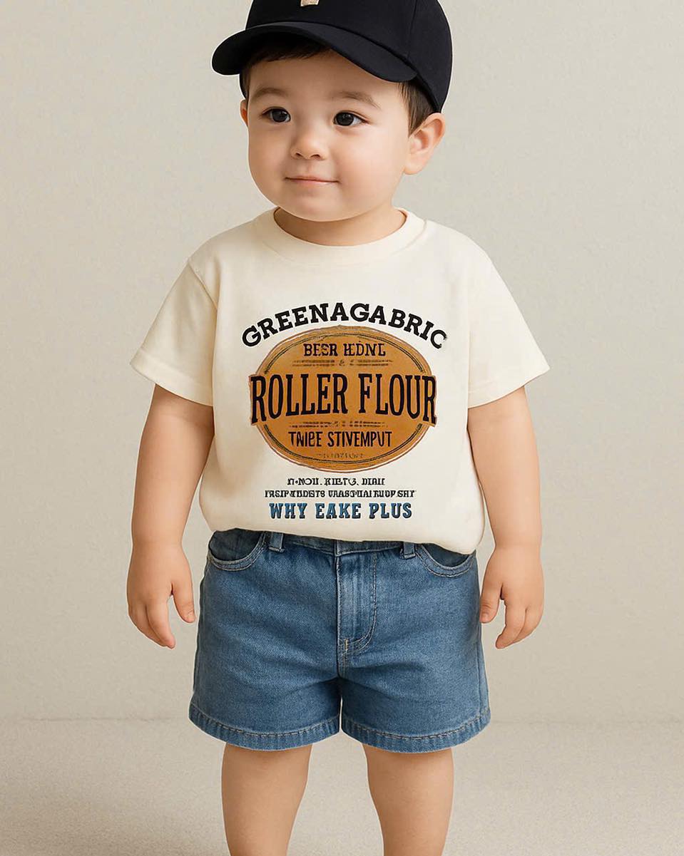 SÉT BỘ ÁO PHÔNG KEM ROLLER FLOUR QUẦN SHORT JEAN CHO BÉ NEW1⃣1⃣5⃣