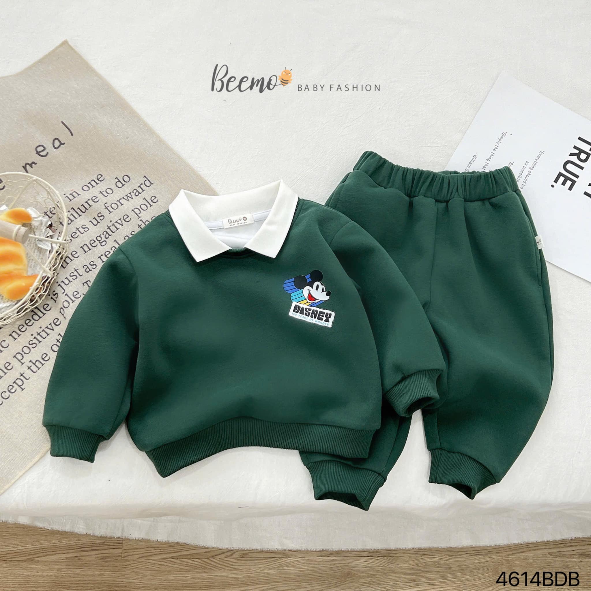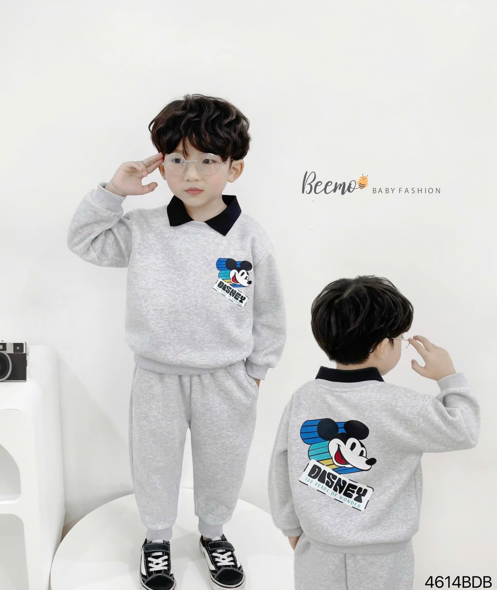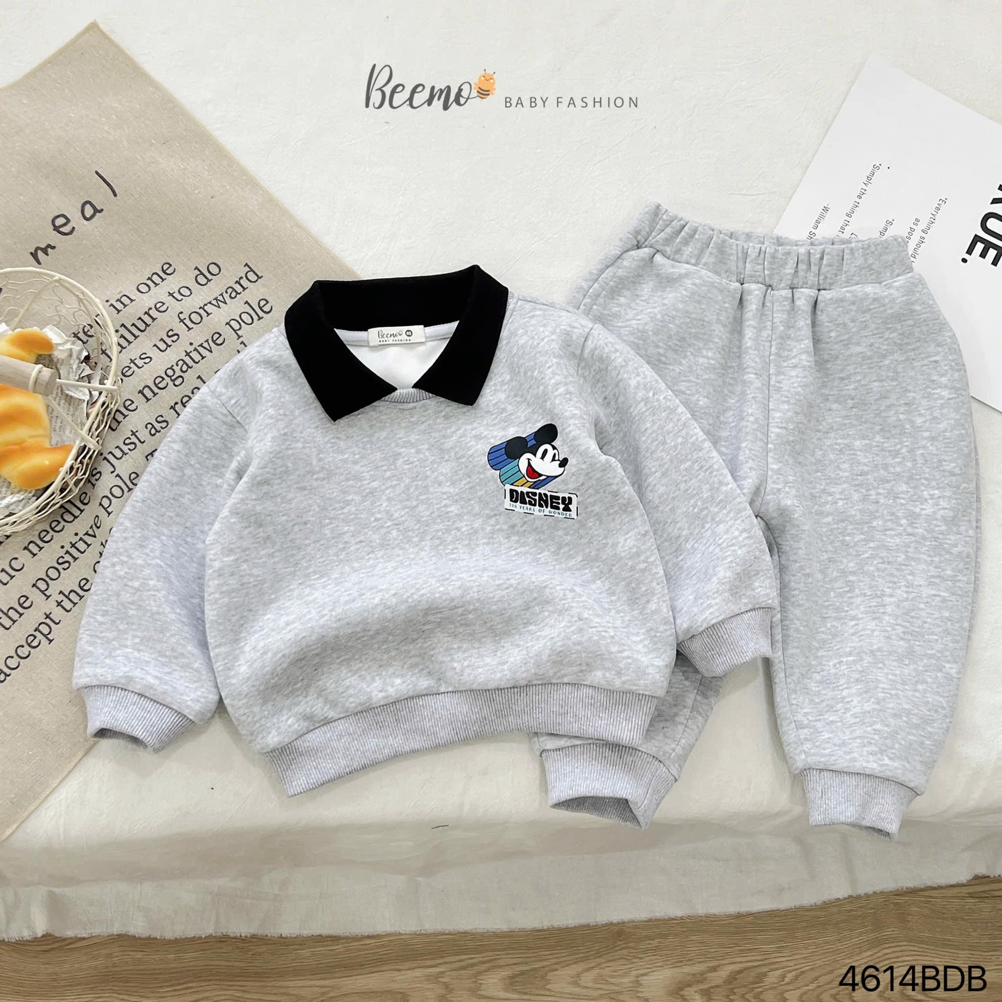 🐭 Thiết kế áo sweater cổ polo, hình in Mickey sắc nét, dễ thương bé nào cũng thích, quần nỉ lưng thun bo chun gấu