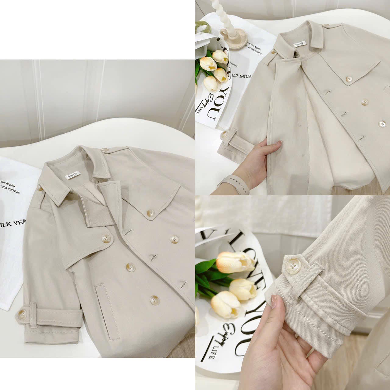🐝 Thiết kế áo khoác măng tô dáng dài thời trang, vibes Hàn siêu mê, áo được may hai lớp tỉ mỉ, có thể mặc được hai kiểu
