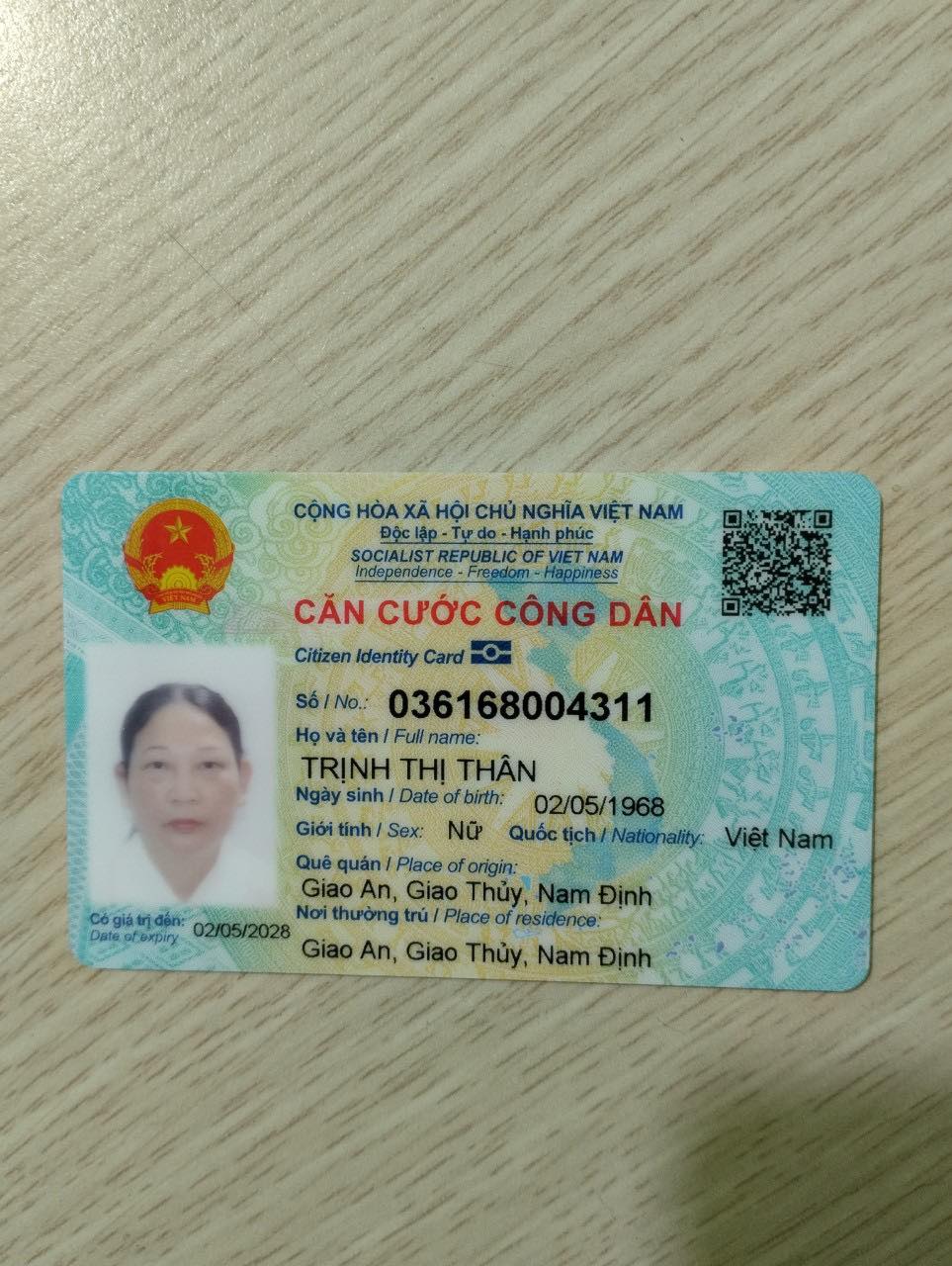 Họ và tên : Trịnh Thị Thân sinh năm 1968