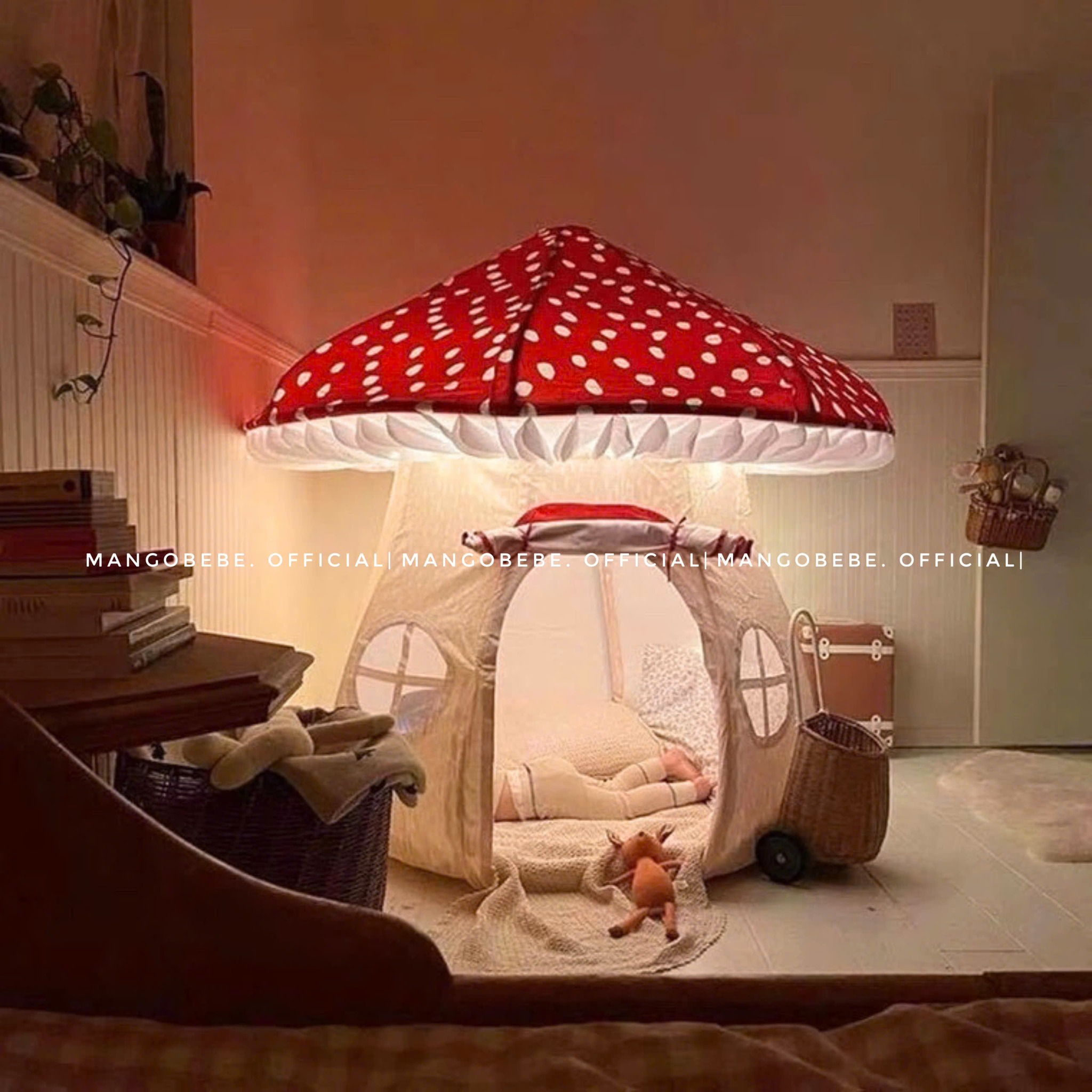 Chiếc lều nấm đẹp nhất mà Xoài từng thấy lun nè. ✨Tưởng tượng bé đi cắm trại dưới rừng cây thì như lạc vào câu chuyện thần tiên lun nha, hay camping buổi tối tại nhà cũng không kém phần lung linh.