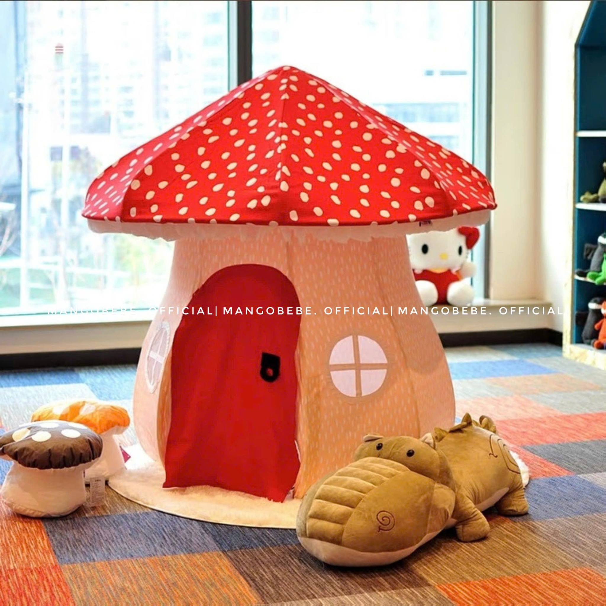✨Lều hình nấm đáng yêu, kích thước rộng rãi cho bé thoải mái nghỉ ngơi, đọc sách, chơi trò chơi, thỏa sức trong thế giới tưởng tượng của mình nha. Lều có cửa có thả xuống kín đáo hay cuốn lên gọn gàng, kèm thảm mềm mại để bé chill chill mọi lúc nha.