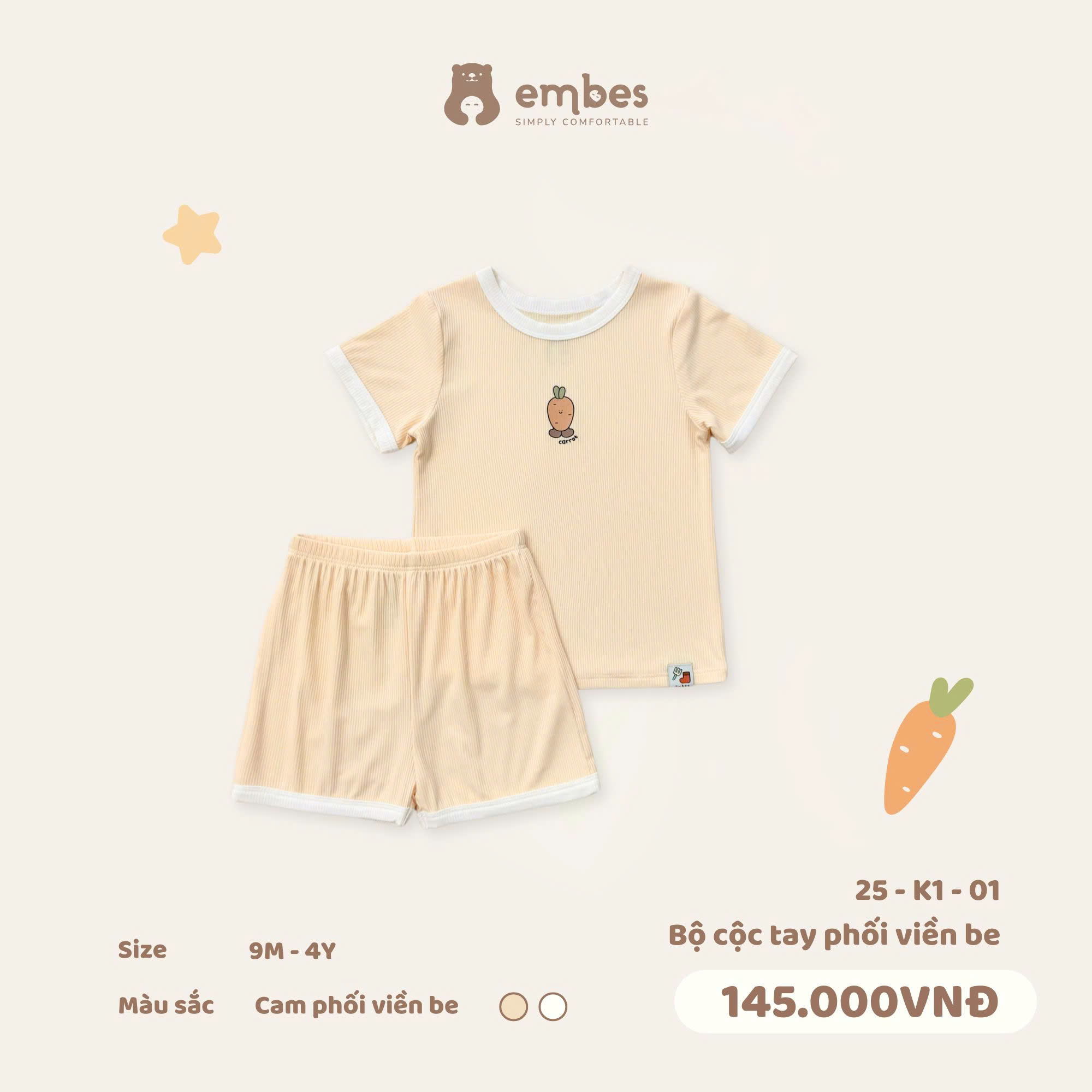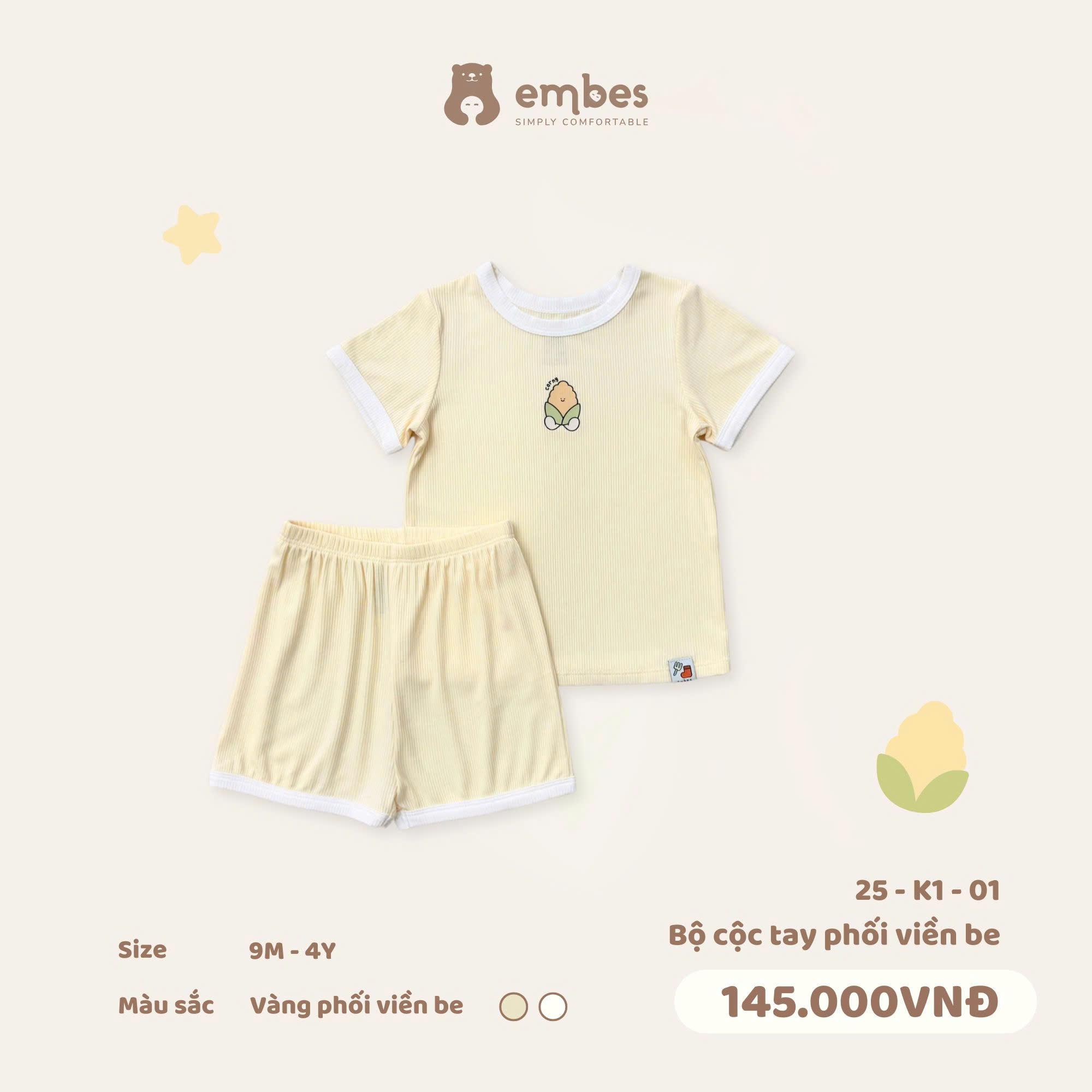 Mùa Xuân hè này, bé yêu sẽ thật thoải mái với bộ cộc tay siêu mềm mịn của nhà Embes 🤗