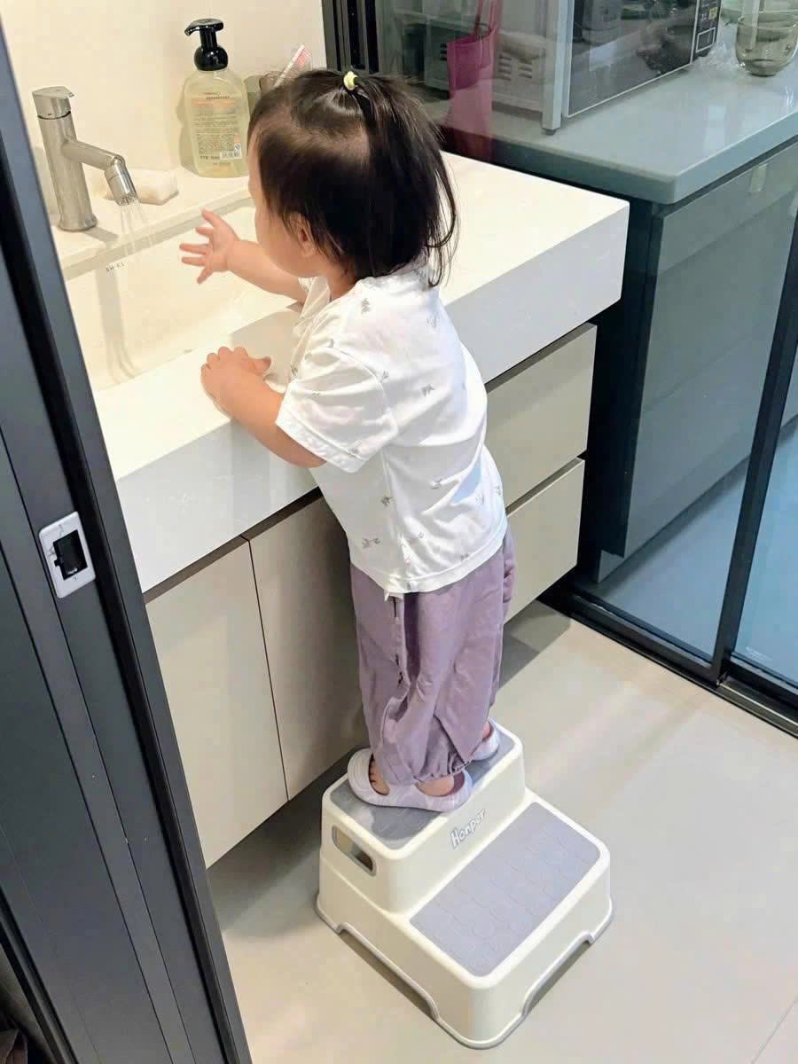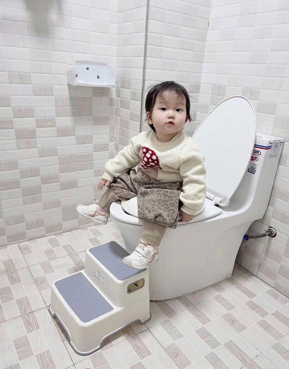 👉 Bé có thể ngồi, đứng, rửa tay, leo lên bồn cầu… đa năng tiện lợi.