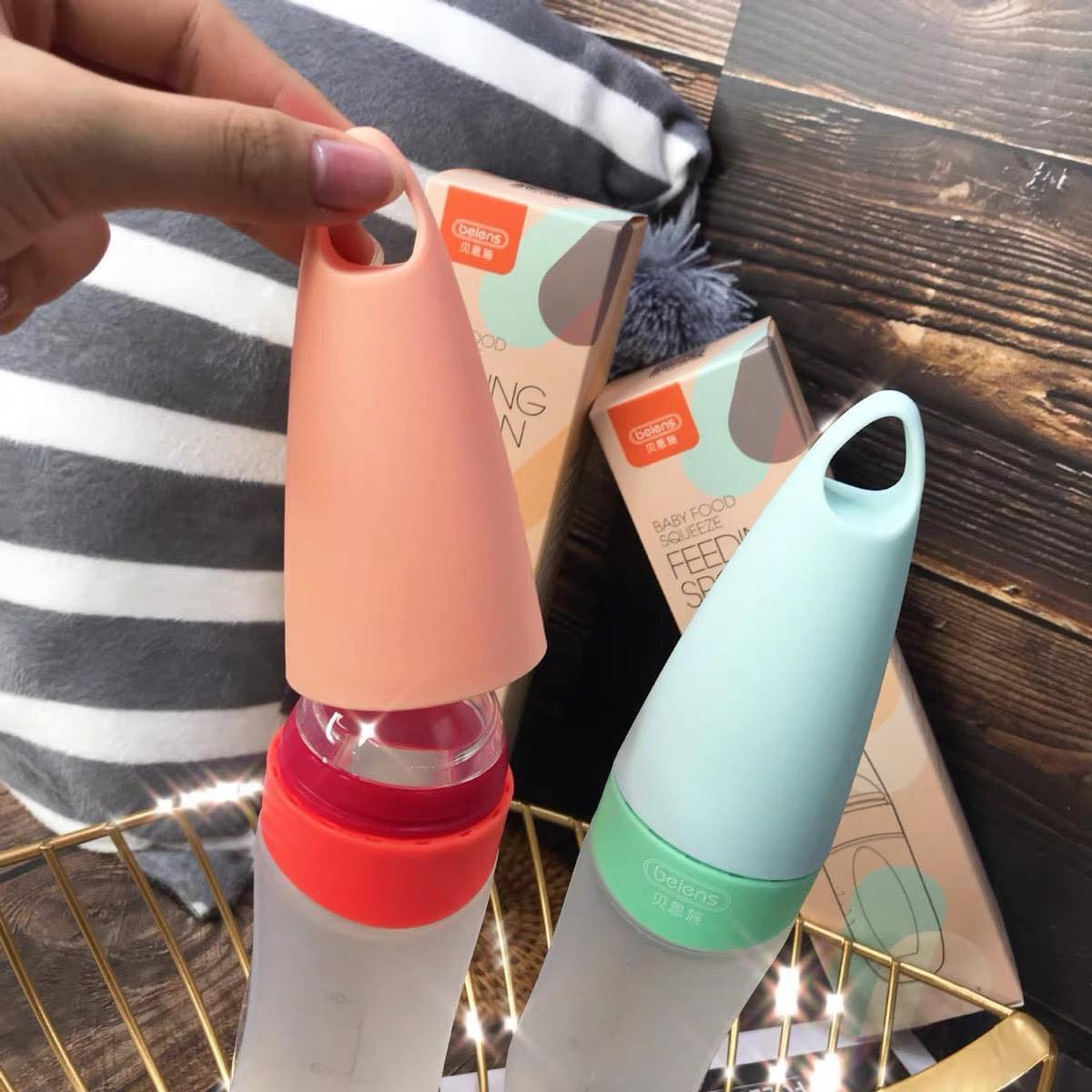 ✅ Phần bình làm bằng silicone mềm, mẹ chỉ cần bóp nhẹ vào phần thân bình, thức ăn sẽ ra ở phần thìa.