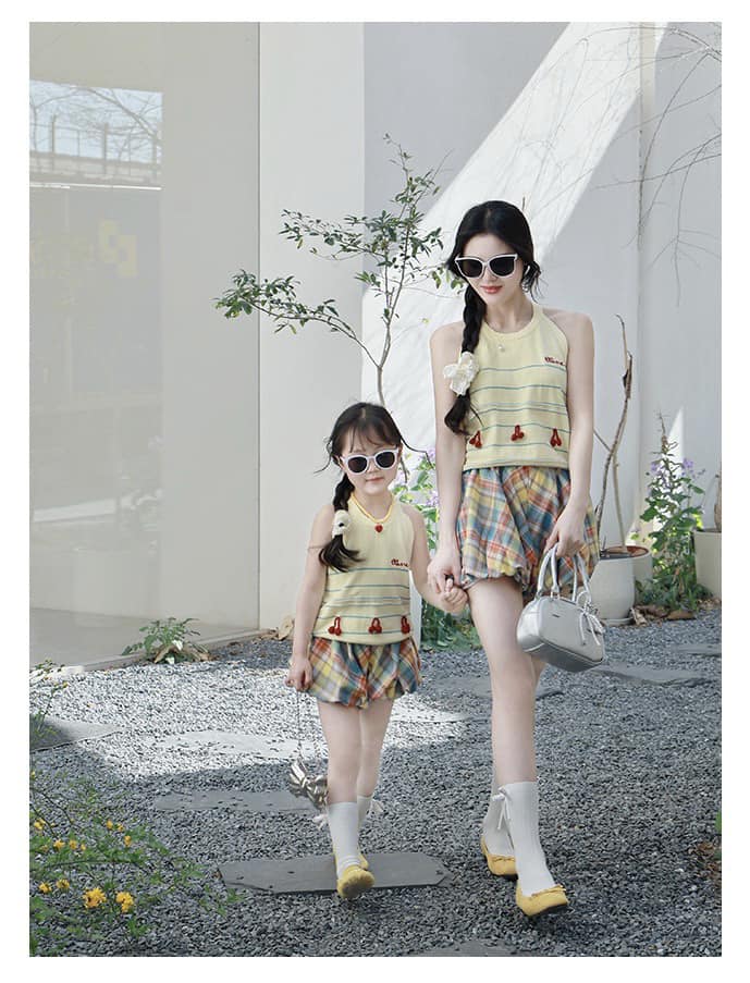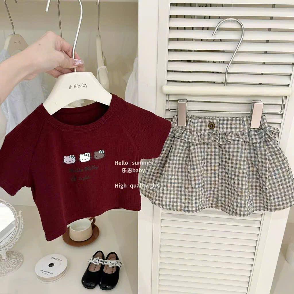Set áo bé gái & chân váy kẻ xinh xắn